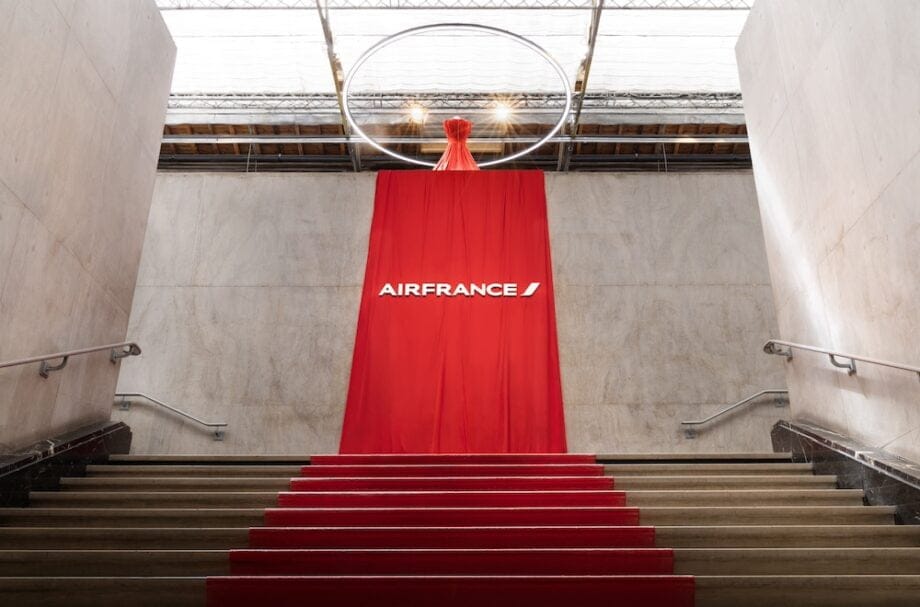 Autour, au sein d’un vaste espace aménagé et à l’accès gratuit, l’on peut admirer la spectaculaire robe rouge crée par le designer de mode Rabih Kayrouz‘. Celle qui rayonne dans le film insitutionnel d’Air France. Mais aussi découvrir la nouvelle cabine business désormais dotée de portes coulissantes entre chaque siège pour plus d’intimité. On peut aussi apprendre les engagements responsables de la marque: carburant plus durable, renouvellement de la flotte, pratiques de pilotage éco-responsables…Et s’offrir des objets griffés créés spécialement, tels une paire de baskets bleu marine avec logo à l’arrière et touches de blanc et rouge . Un modèle hautement désirable en édition limité : 179€. Et aussi des étiquettes de bagages, des tee-shirts, des tote-bags, des bagages et autres articles upcyclés. À quérir sur shopping.airfrance.com.