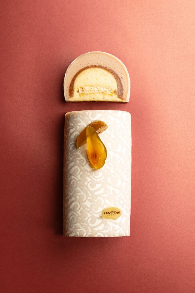 Directement inspirée des croquis de mode exposés dans le palace parisien et immaginée par Julien Dugourd, pâtissier consultant du Palace, la bûche haute couture reflète une robe de créateur…à croquer ! Sa composition : Mousse vanille douce, cœur praliné aux éclats de fruits secs torréfiés , et crèmeux olong. Un jeu de textures, entre croustillant et onctuosité. Édition limitée à 60 exemplaires, chacun numéroté, sur commande 72h à l’avance. 8 à 10 personnes : 140€. Ou en part individuelle. Au cake shop de l’hôtel. mohg.commopar-camelia@mohg.com