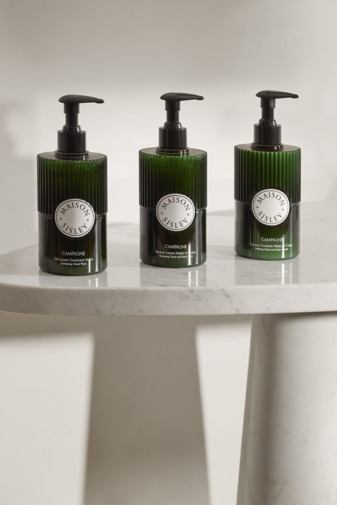 Après et avec Hair Rituel by Sisley, la successfull ligne cheveux et les bougies parfumées, la marque développe son univers lifestyle et investit la salle de bains. Au cœur de cette ligne, 3 produits corps et mains, qui embaument l’une de ses fragrances originelles :l’Eau de Campagne. Créée par Isabelle et Hubert d’Ornano, propriétaires de la marque depuis 1976.